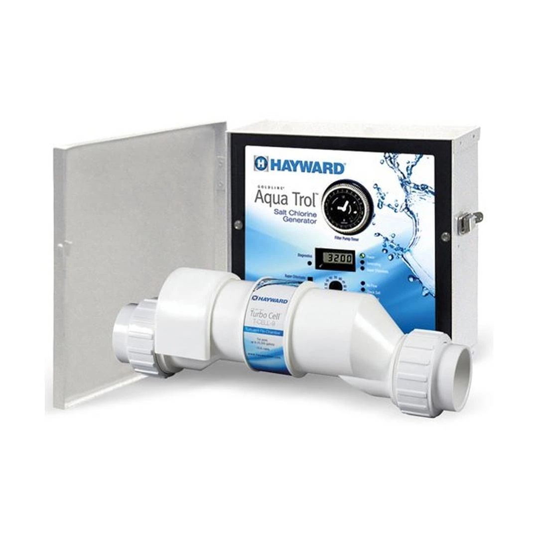 The Hayward W3AQ-TROL-RJ-TL AquaTrol Salt Chlorinator is designed for above ground pools up to 18,000 gallons. It installs vertically directly below your existing return jet.