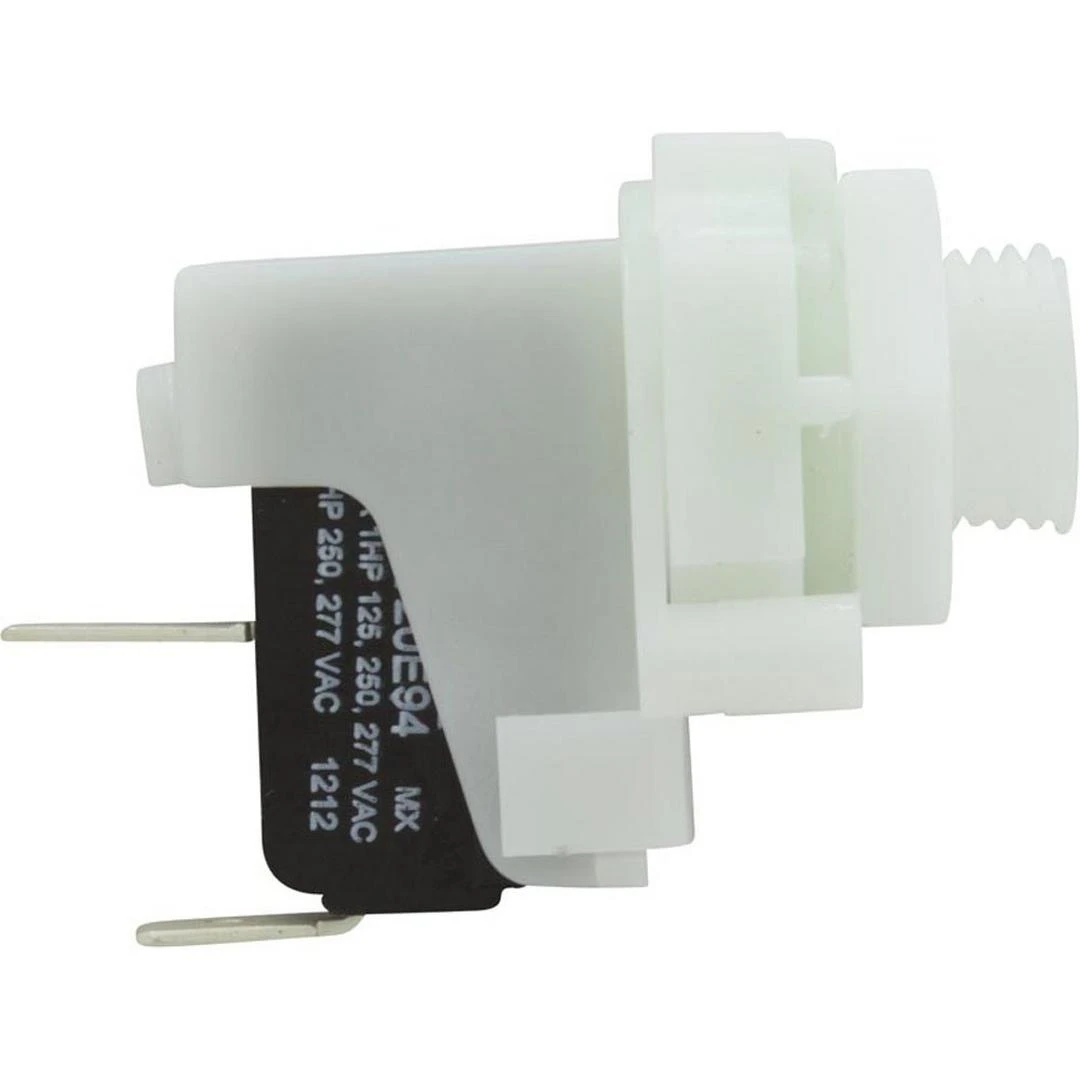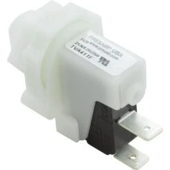 PresAirTrol Tinytrol SPST miniature Alternate Latching Action air switch TVA411F with 1/2″” Threaded Mount and lock ring nut, and a Center Air Spout. SPNO, single pole, normally open. Alternate Action is Push and the device remains ON, push again and it will Turn Off. Used on an air actuated spa control systems, controls two devices. Tinytrol air switches are recommended for air hose runs of less than 20 ft. 2 wire terminal connections on this general hot tub air switch – common (always used), NO normally open (usually used). Connects with 1/8″” air hose, sold separately.